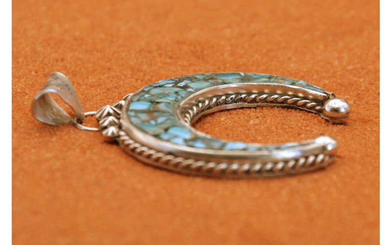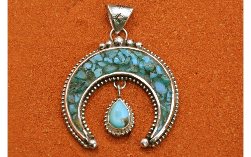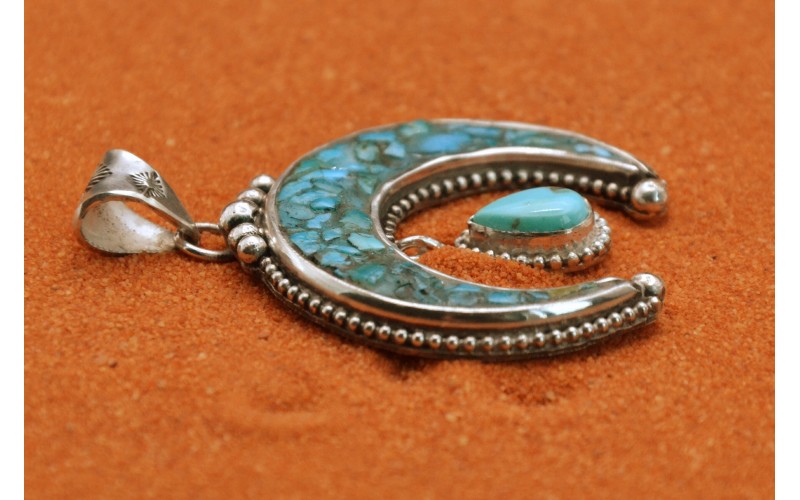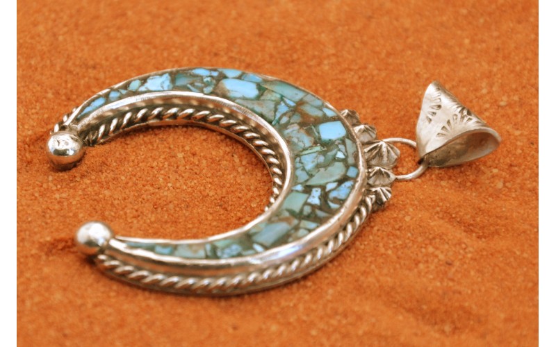 Handcrafted sterling silver Naja pendant inlaid with turquoise and a Sonoran turquoise stone in the middle
