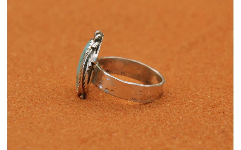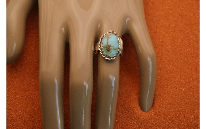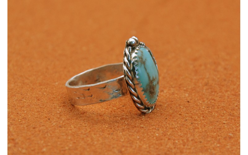 Handcrafted sterling silver ring set by a beautiful Kingman turquoise stone