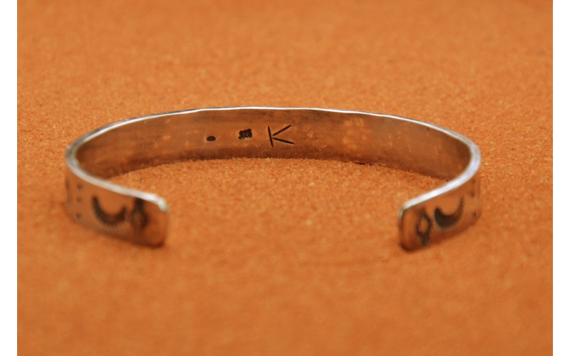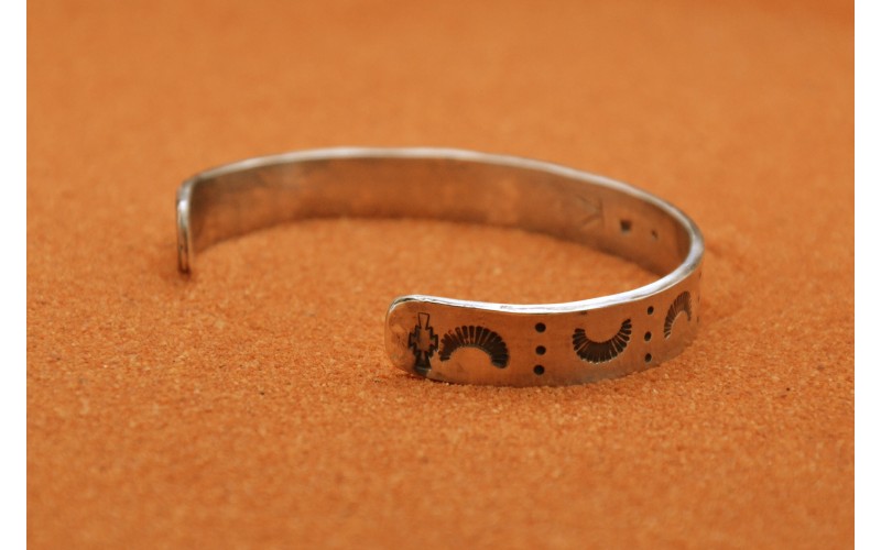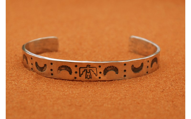Handcrafted sterling silver bracelet hammered by the Thunderbird and the sunrays symbol
