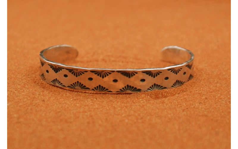 Handcrafted sterling silver bracelet hammered by the sunrays symbol