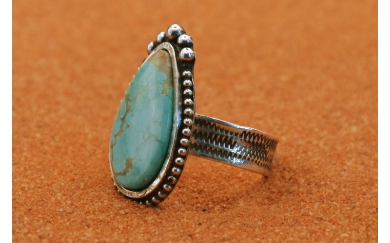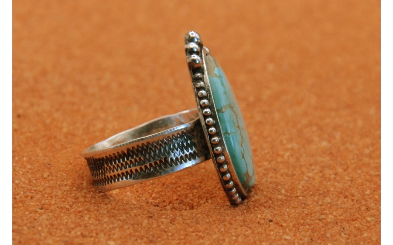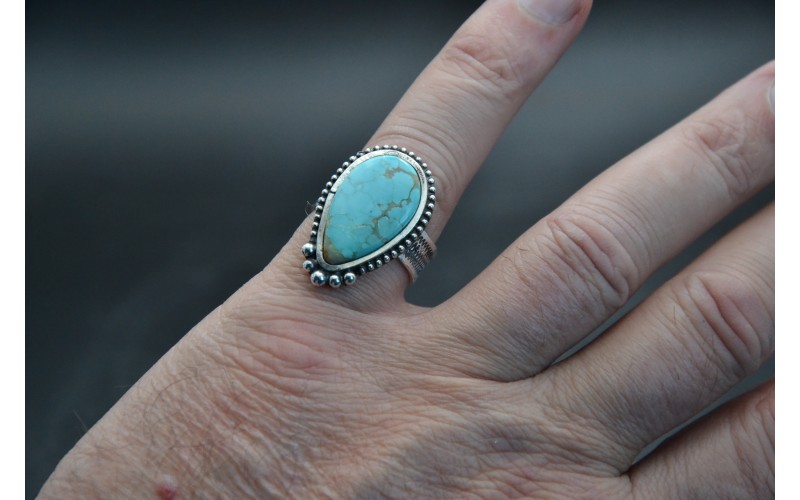 Handcrafted sterling silver ring set with a beautiful Royston turquoise stone