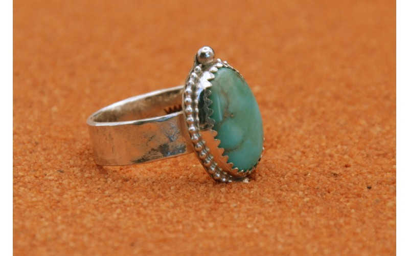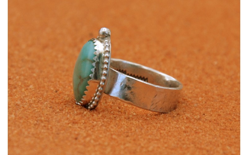 Handcrafted sterling silver ring set by a beautiful Kingman turquoise stone