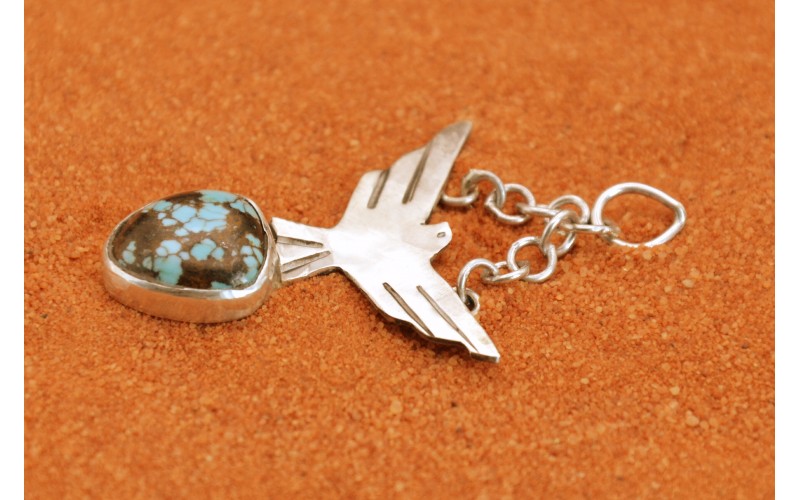 Handcrafted sterling silver pendant adorned by an eagle and set by a beautiful Number 8 turquoise stone