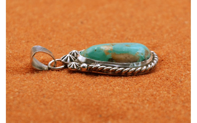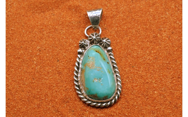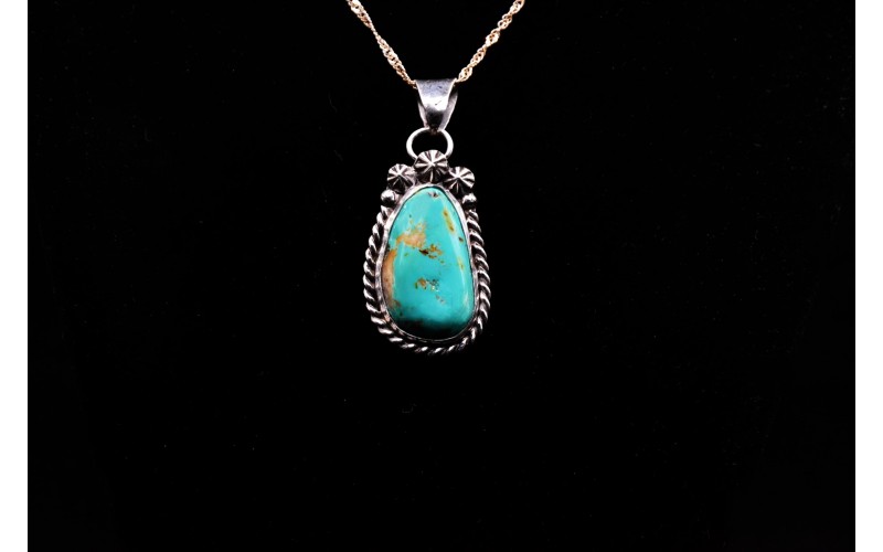 Handcrafted sterling silver pendant set by a beautiful Kingman turquoise stone