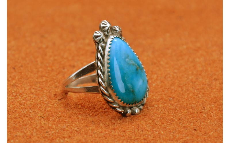 Handcrafted sterling silver ring set by a beautiful Kingman turquoise stone