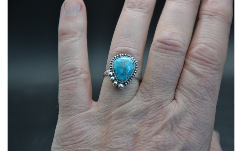 Handcrafted sterling silver ring set by a beautiful sierra blue turquoise stone
