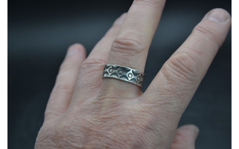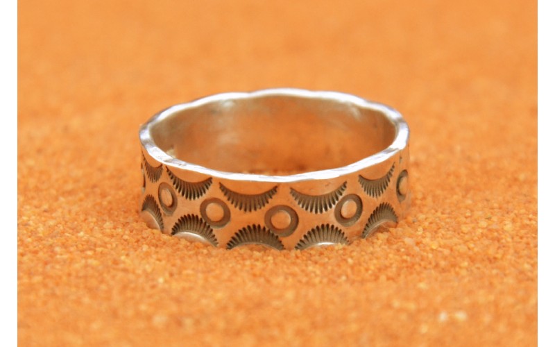 Handcrafted sterling silver ring hammered by the sunrays symbol