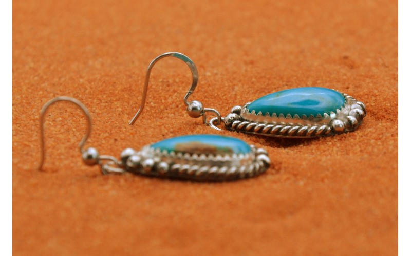 Handcrafted sterling silver earrings set by beautiful kingman turquoise stones