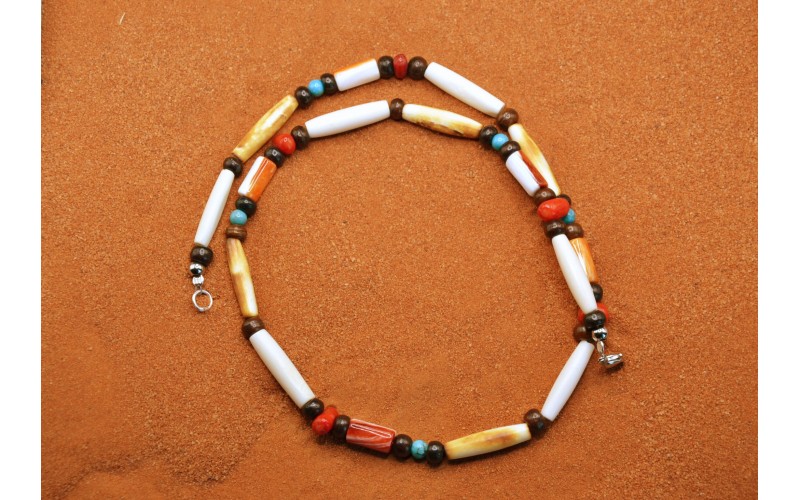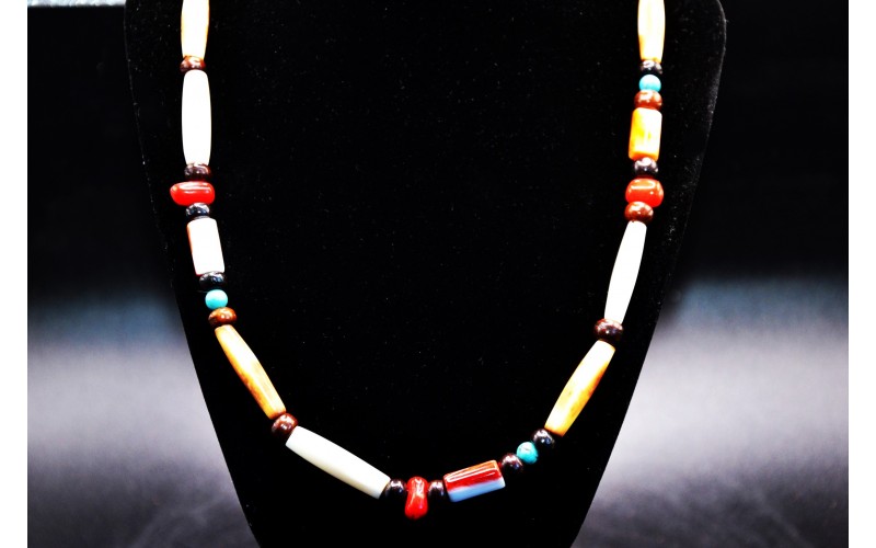 Handcrafted turquoise, coral, spiny oyster and bones necklace