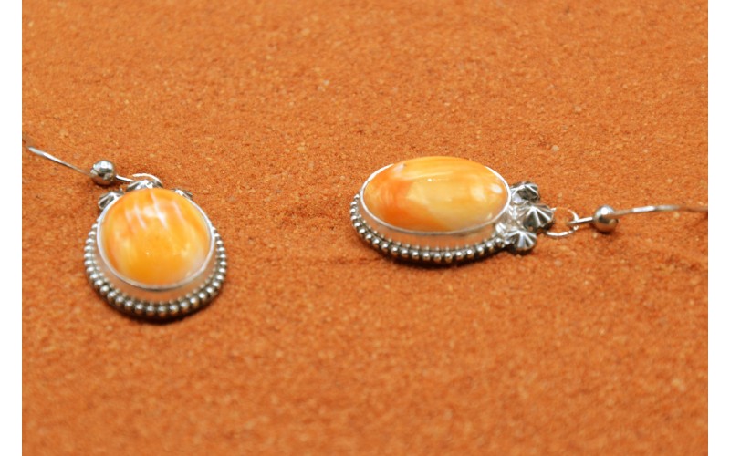 Handcrafted sterling silver earrings set by beautiful orange spiny oyster
