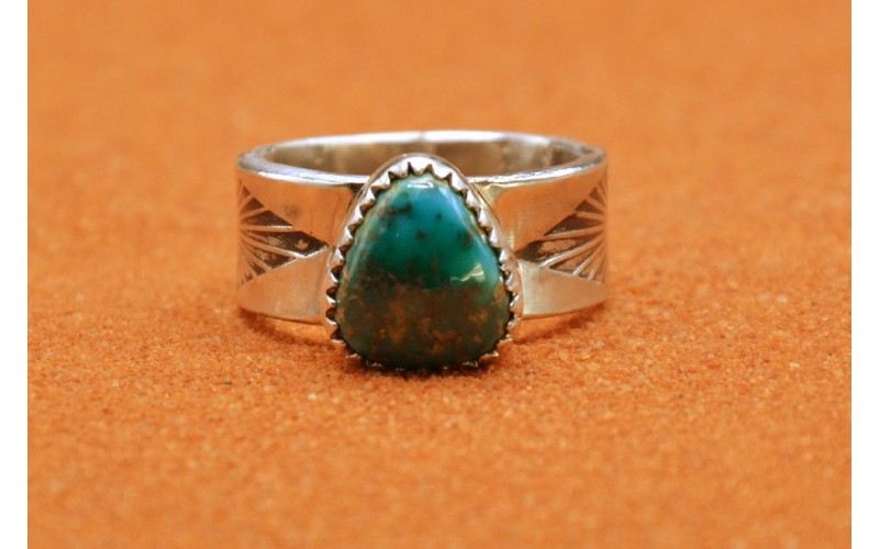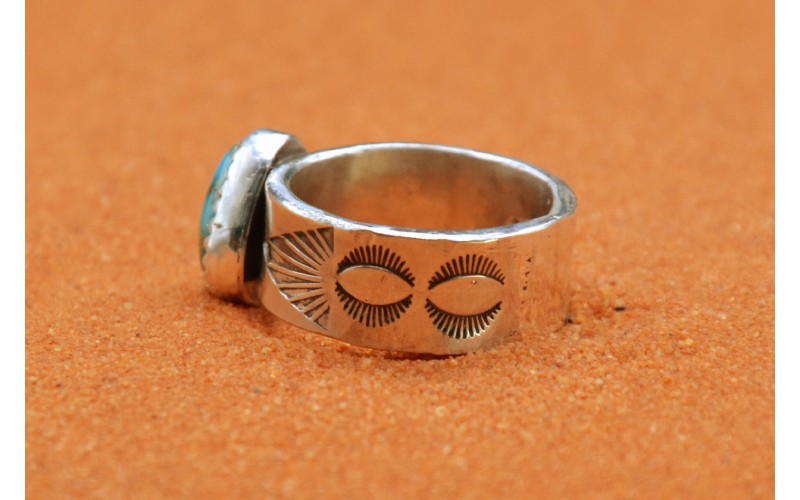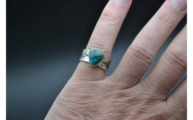 Handcrafted sterling silver ring set by a beautiful lone mountain turquoise stone