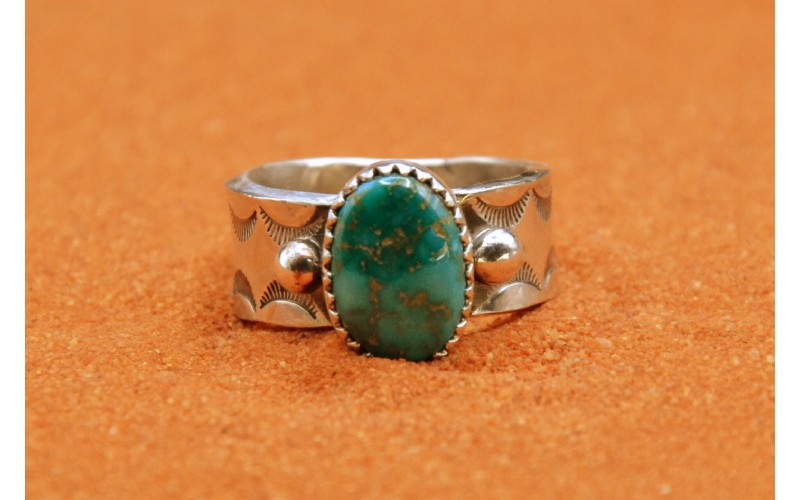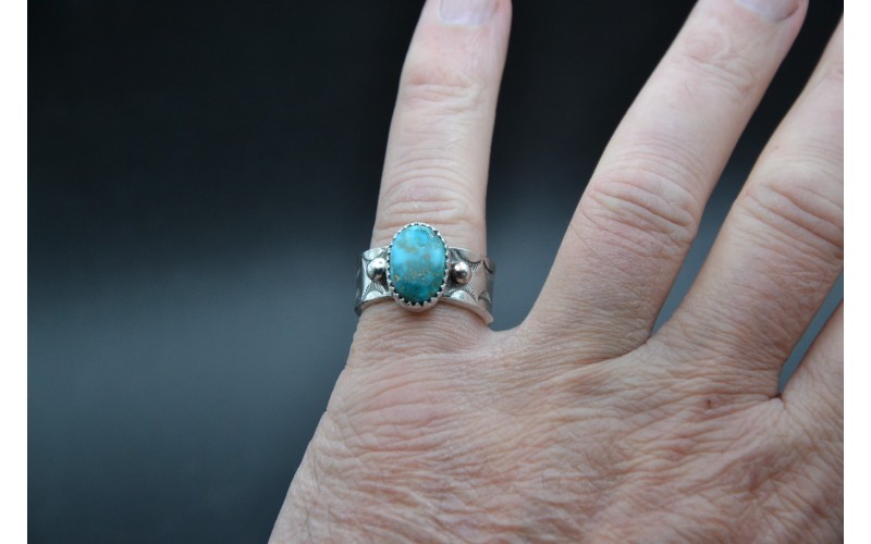 Handcrafted sterling silver ring set by a beautiful lone mountain turquoise stone