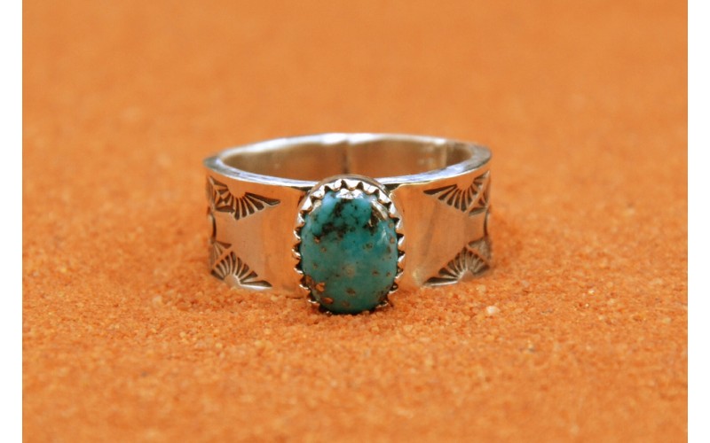 Handcrafted sterling silver ring set by a beautiful kingman turquoise stone