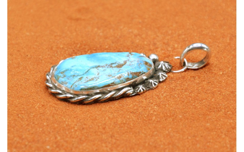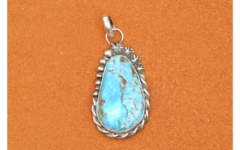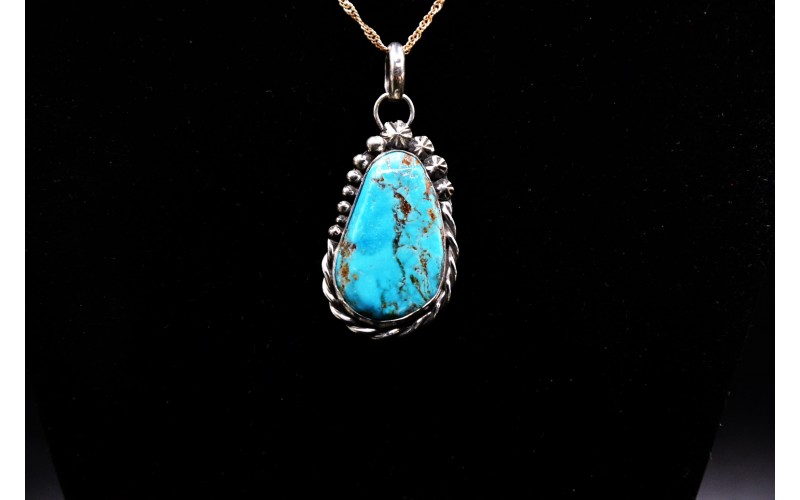Handcrafted sterling silver pendant set by a beautiful pilot mountain turquoise stone
