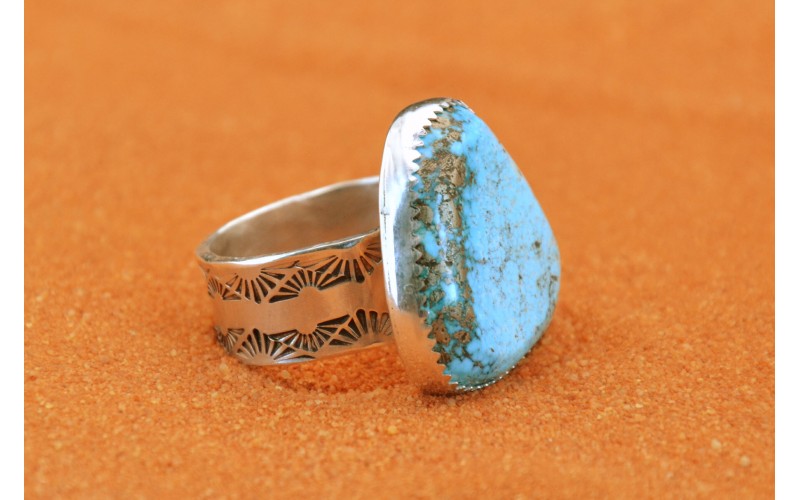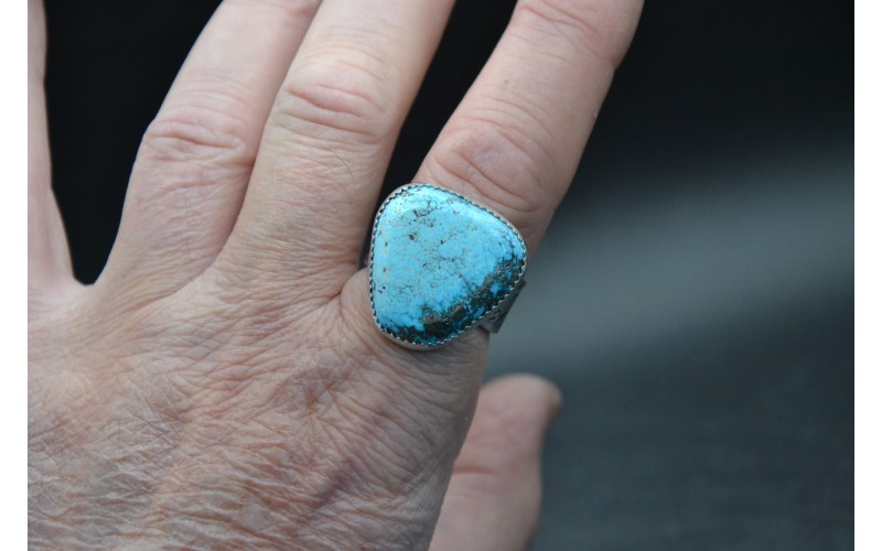 Handcrfated sterling silver ring set by a persian turquoise stone