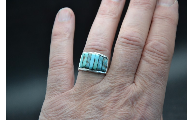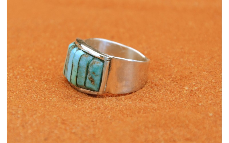 Handcrafted sterling silver ring inlaid with kingman turquoise stones
