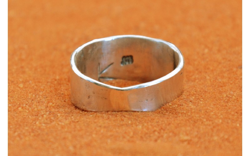 Handcrafted sterling silver ring inlaid with kingman turquoise stones and hammered by the sun symbol