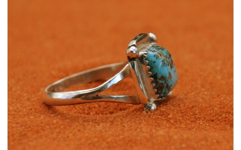 Bague artisanale en argent 925/1000 sertie d'une turquoise Kingman