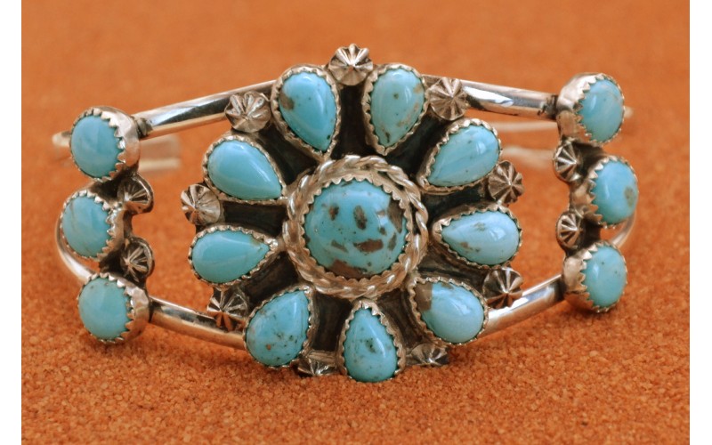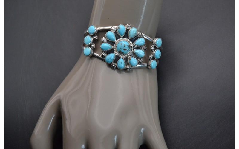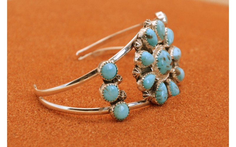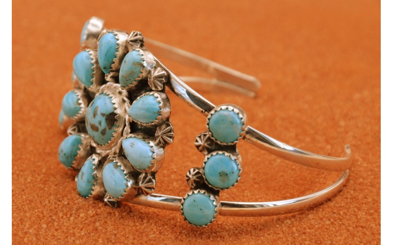 Bracelet artisanal en argent 925/1000 serti de 16 turquoises Kingman