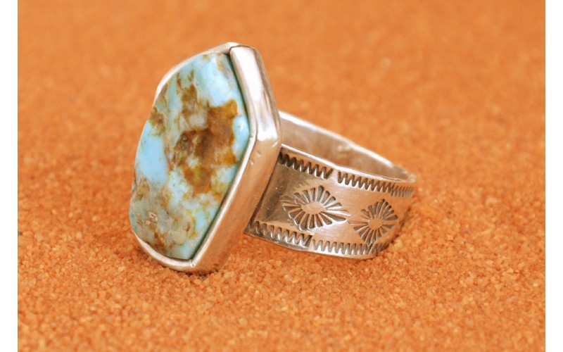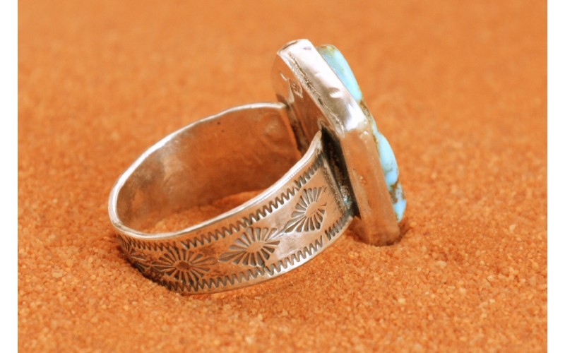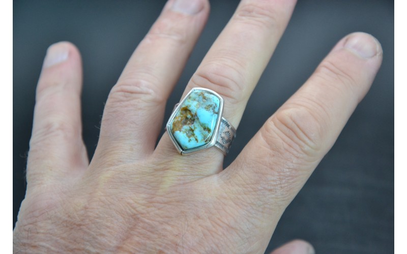 Bague artisanale en argent 925/1000 incrustée d'une magnifique turquoise Pilot Mountain