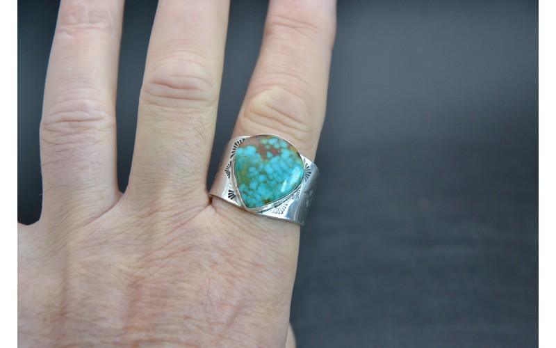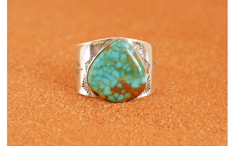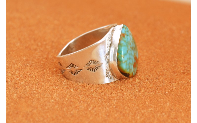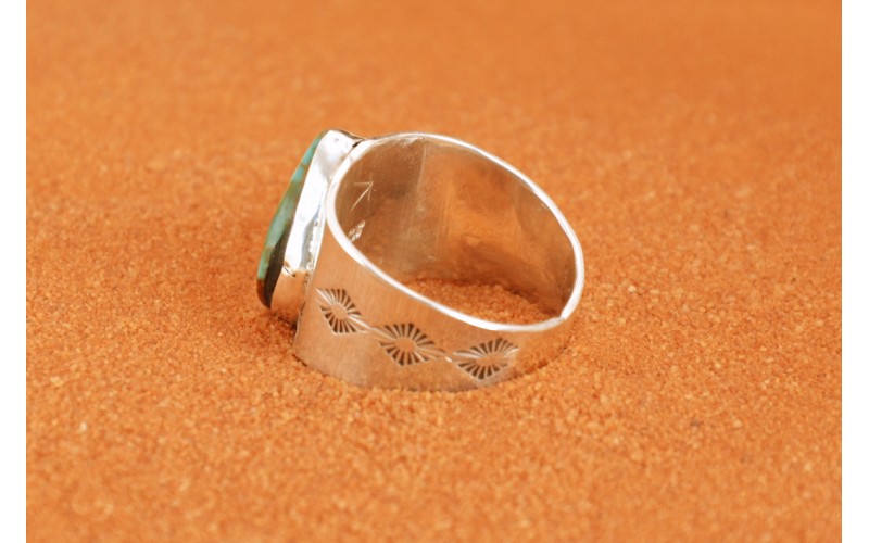 Chevalière artisanale en argent 925/1000 incrustée d'une magnifique turquoise Sonora