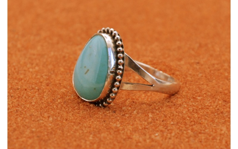 Bague artisanale en argent 925/1000 sertie d'une belle turquoise Kingman