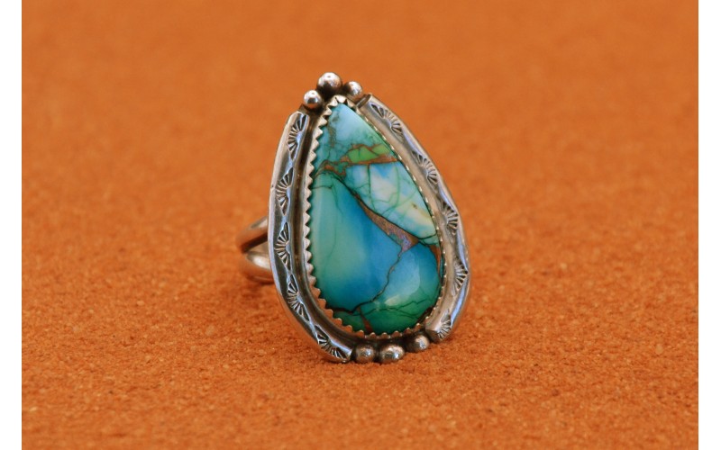 Bague artisanale en argent 925/1000 sertie d'une magnifique turquoise Mojave