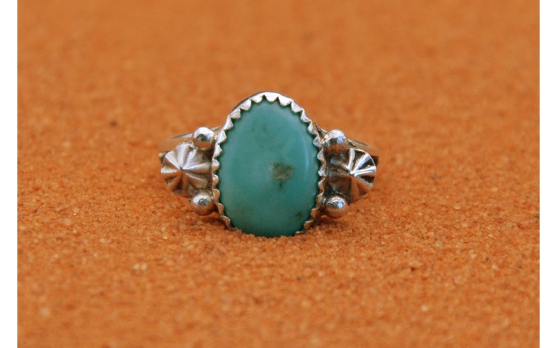 Bague artisanale en argent 925/1000 sertie d'une magnifique turquoise Kingman