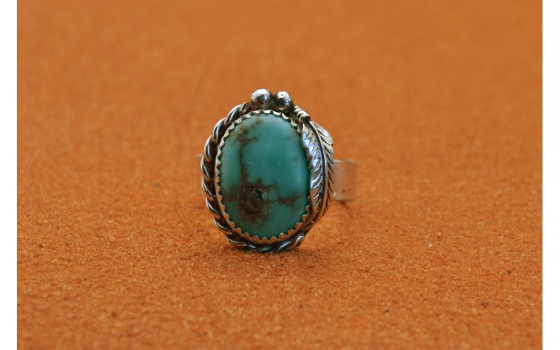 Bague artisanale en argent 925/1000 sertie d'une magnifique turquoise Kingman