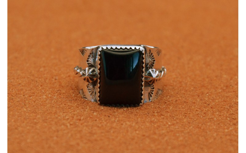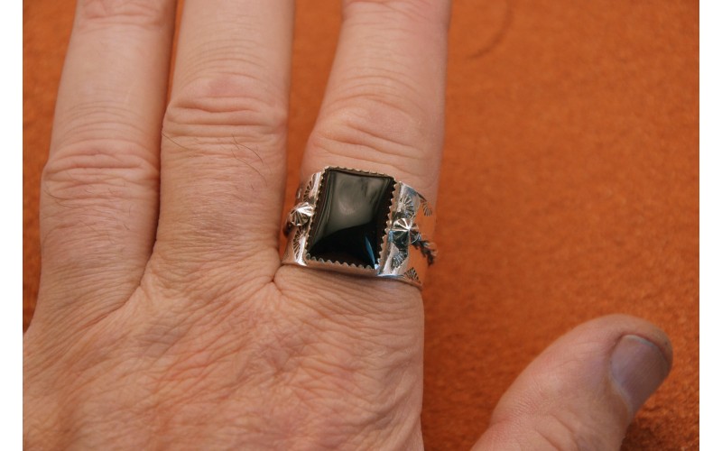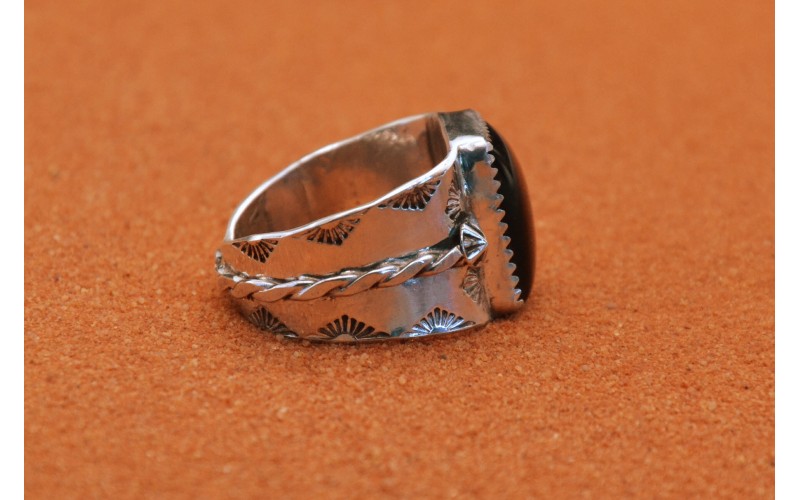 Bague artisanale en argent 925/1000 sertie d'une pierre en onyx