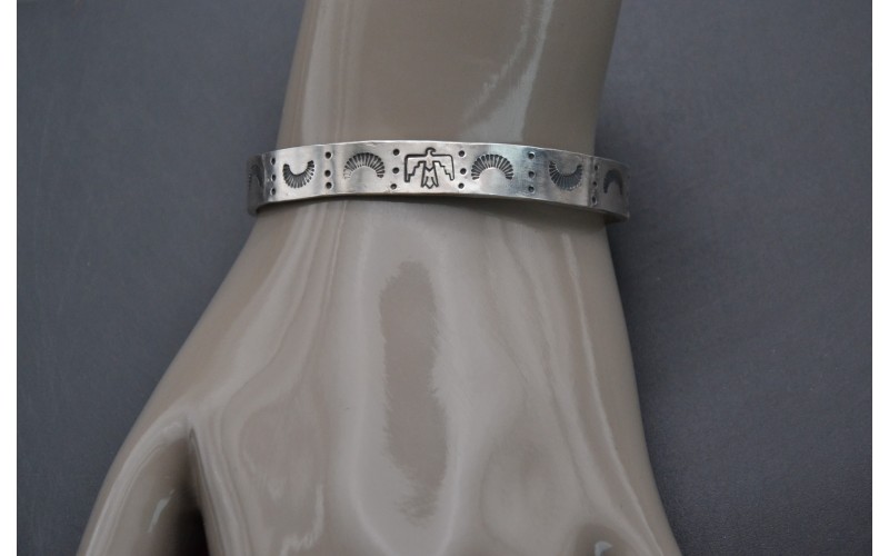 Bracelet artisanal en argent 925/1000 frappé du symbole de l'oiseau tonnerre et des rayons du soleil