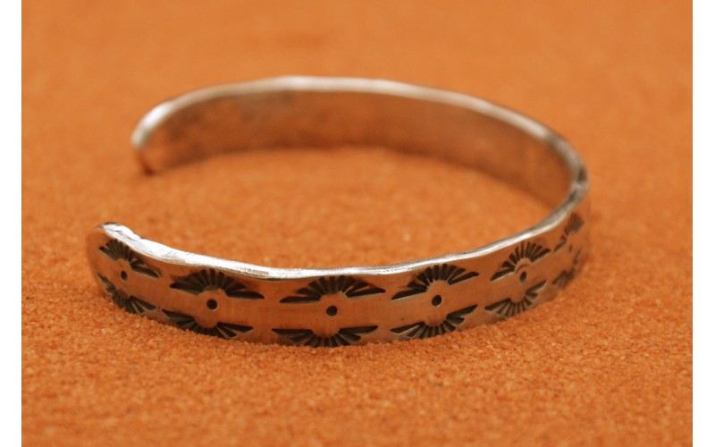 Bracelet artisanal en argent 925/1000 frappé du symbole des rayons du soleil