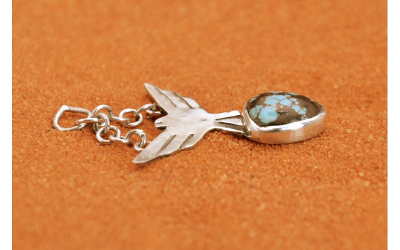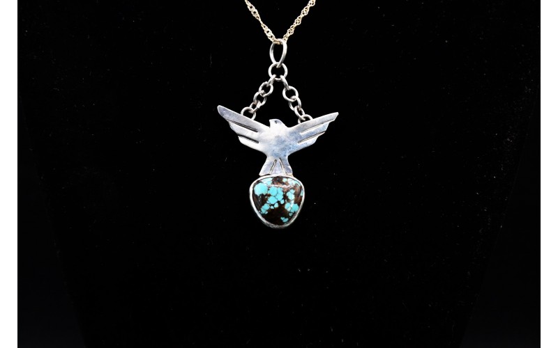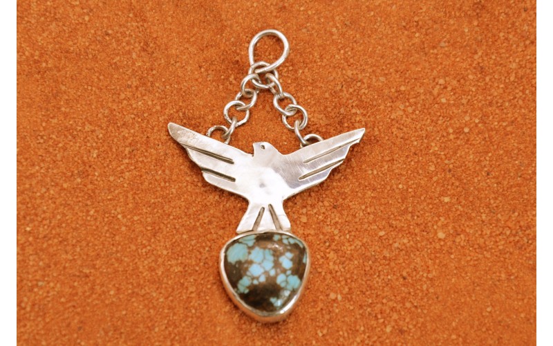 Pendentif artisanal en argent 925/1000 orné d'un aigle et serti d'une magnifique turquoise Number 8
