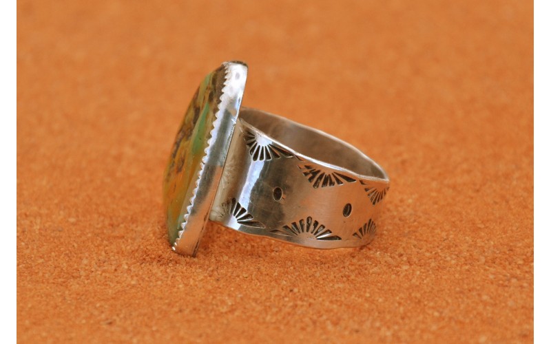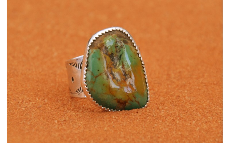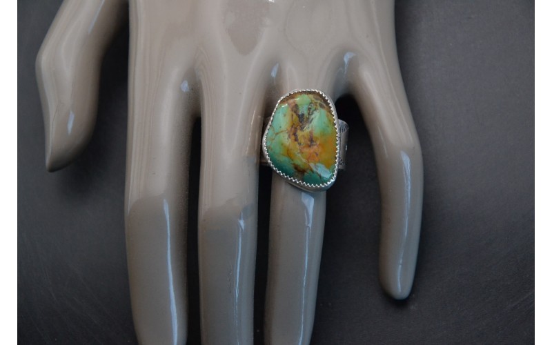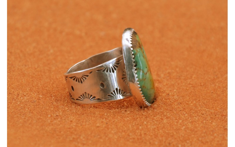 Bague artisanale en argent 925/1000 sertie d'une magnifique turquoise Sonora