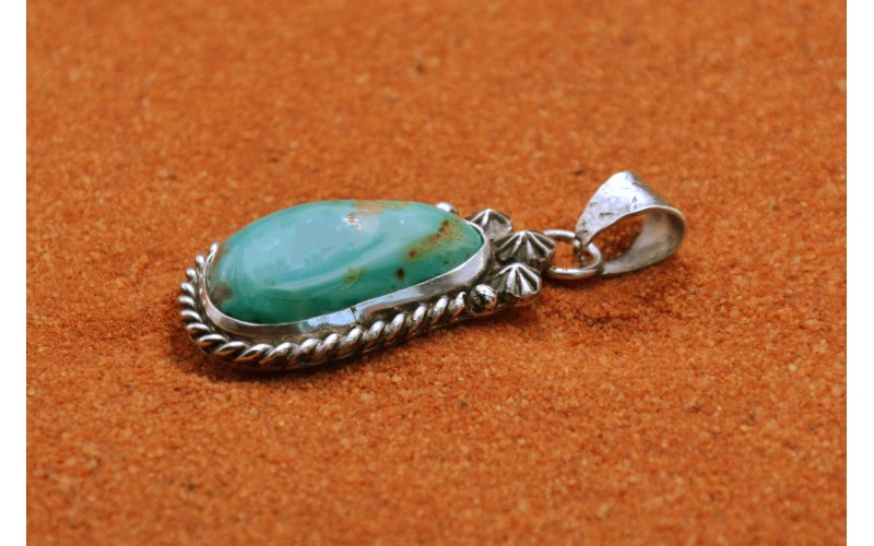 Pendentif artisanal en argent 925/1000 serti d'une magnifique turquoise Kingman entourée d'une corde