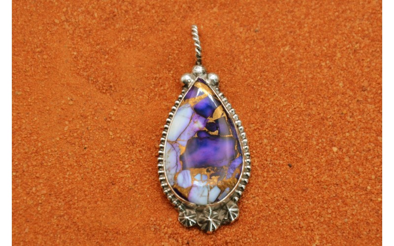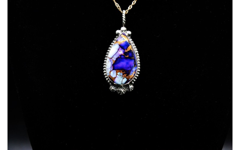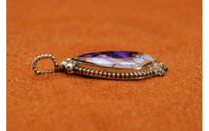 Pendentif artisanal en argent 925/1000 serti d'un magnifique cabochon violet dahlia