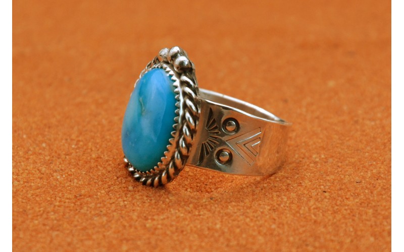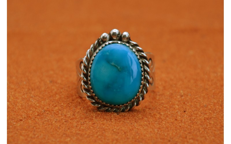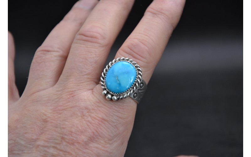 Bague artisanale en argent 925/1000 sertie d'une magnifique turquoise Kingman