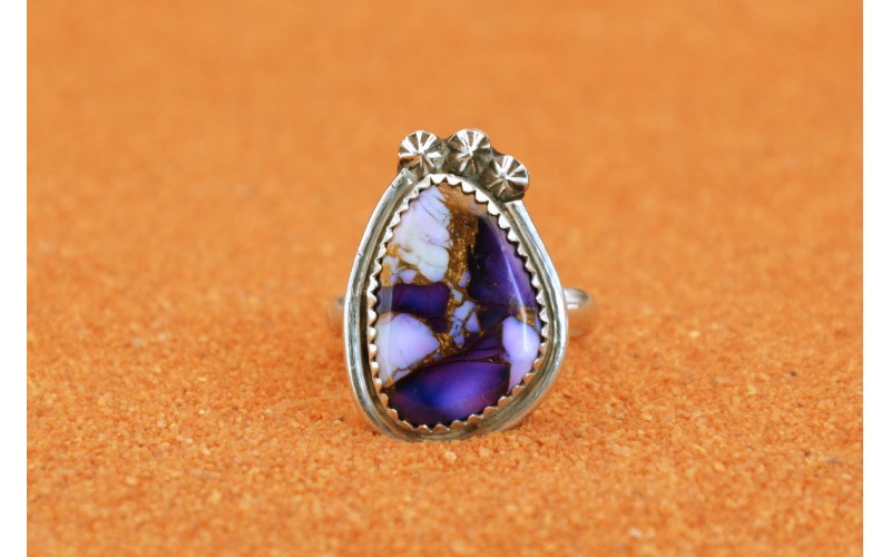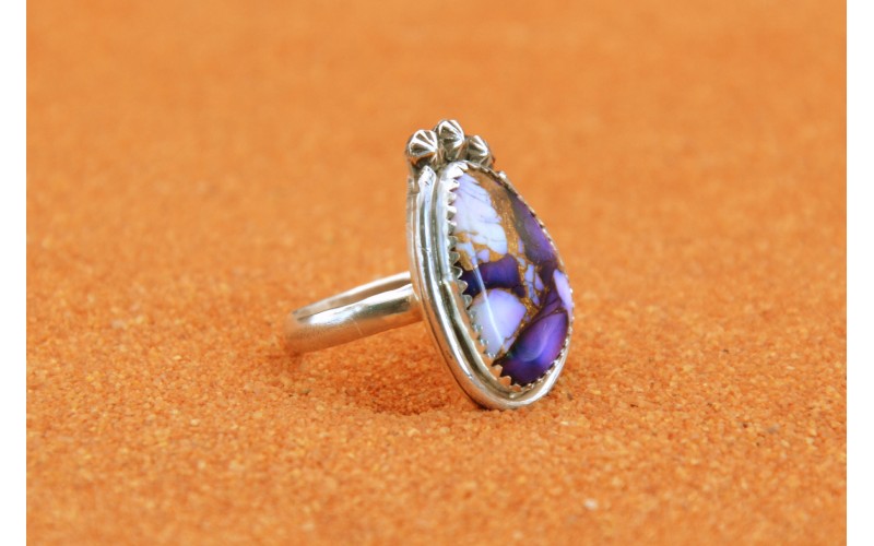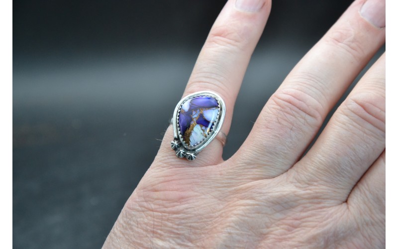 Bague artisanale en argent 925/1000 sertie d'une magnifique Violet Dahlia