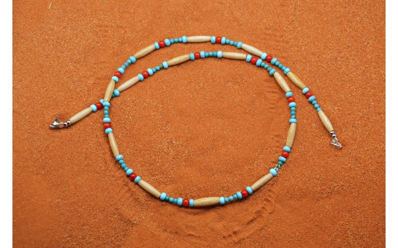Collier avec des tubes en os et des perles en turquoise kingman et corail