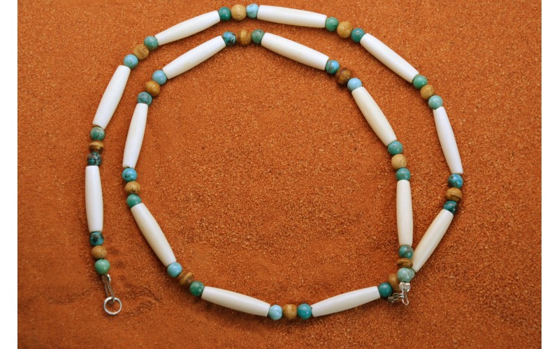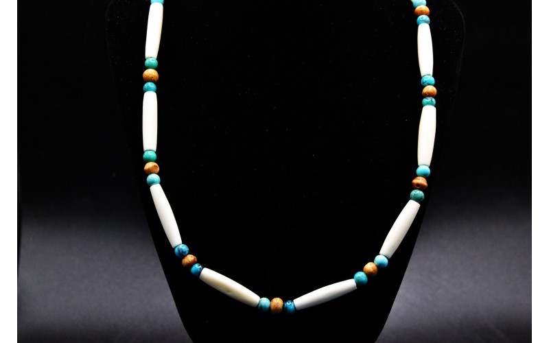 Collier artisanal avec des perles en turquoises kingman et des tubes en os
