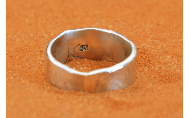 Bague artisanale en argent 925/1000 incrustée de turquoise kingman et frappée du symbole du soleil